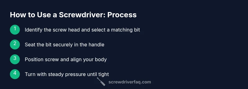 A screwdriver acts as a lever system that converts your hand motion into rotational force (torque) on the screw. The handle stores energy from your grip, the shaft transfers it, and the tip engages the screw head. Friction and the fit between tip and head determine how efficiently you apply torque. When the tip sits snugly in the screw head, you can turn smoothly; a loose fit causes slipping and cam-out. Remember that the orientation of your arm, wrist, and elbow matters: a straight line from your shoulder through your hand minimizes strain and maximizes control. According to Screwdriver FAQ, understanding how a screwdriver converts your energy into turning power helps you pick the right approach and avoid common mistakes.