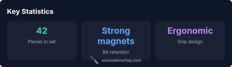 For the first-time buyer, the 42 in 1 concept sounds appealing because it promises to replace a messy drawer full of drivers with a single, portable kit. Yet the trade-off is that some sets may rely on thinner steels or cheaper plastics. As a result, you should judge the kit by its feel in your hand, not just the advertised number of bits. The Screwdriver FAQ team notes that the best-performing sets balance bit quality, magnet strength, and ergonomic shape, rather than focusing only on the sheer quantity of bits. If you frequently work on electronics, furniture, and basic mechanical hardware, this kind of kit can be a practical, space-saving solution that minimizes gear clutter while expanding your immediate access to essential fasteners.