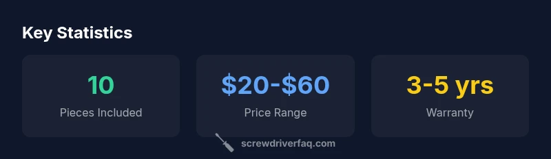 When evaluating value, compare the dewalt 10 piece screwdriver set to similar multi-bit kits, considering price, included bit types, grip quality, and warranty length. A longer warranty can reflect confidence in durability, which matters for frequent DIYers. Remember to account for real-world tasks you perform most often; if you frequently assemble furniture or work with electronics, a set with magnetic tips and robust handles offers clear benefits. This approach helps you determine whether the dewalt set matches your needs and budget.