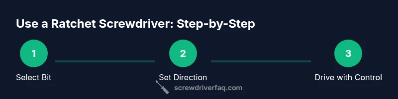 To use a ratchet screwdriver, choose the correct bit, seat it firmly, and set the drive direction. Hold the handle securely, align the bit with the screw, and apply steady wrist motion as the ratchet advances. Let the mechanism take the turns, then reverse for removal if needed. Avoid overtightening by stopping when you feel resistance, and switch directions promptly for efficient work. According to Screwdriver FAQ, practicing with a scrap screw helps build confidence before tackling real projects.