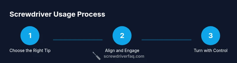 According to Screwdriver FAQ, understanding what a screwdriver is helps you choose the right tool and avoid common mistakes. A screwdriver is a hand tool with a handle and a shaft ending in a tip that fits the screw head. When you turn the handle, the shaft transfers rotational force to the screw. The tip engages the screw recess to minimize slippage; proper engagement reduces cam-out and damaged heads. In practice, the right fit means less effort and fewer stripped screws, especially on hardwoods, softwoods, or metal fasteners. In this guide we’ll cover how to use different tip styles, how to hold the tool, and how to apply torque safely and consistently. Safety comes first when you’re dealing with electrical hardware or delicate finishes, and a steady, controlled approach pays off in the long run.