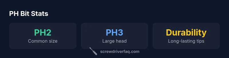 The term 3 phillips bit refers to the PH3 size, which is the larger end of the Phillips family used for bigger screws and higher torque applications. In practice, many DIYers encounter PH2 more often, but PH3 becomes essential when a project involves larger furniture hardware, metal fittings, or structural fasteners. According to Screwdriver FAQ, recognizing PH3 and PH2 by tip shape and notch depth helps prevent cam-out and stripping.
