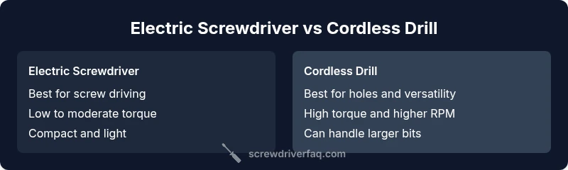 If you ask, does an electric screwdriver work like a drill, the answer depends on the task and the tool's design. According to Screwdriver FAQ, the distinction comes down to torque capacity, clutch control, and the intended use profile of each tool. In everyday DIY projects, many homeowners want a single, all-purpose tool, but the truth is that a dedicated drill handles larger holes and tougher materials while an electric screwdriver excels at fast, repeatable fastener driving. The goal of this section is not to gatekeep but to set realistic expectations: use the right tool for the job, and you’ll save time, avoid stripped screws, and reduce wear on bits. For beginners, this is a foundational concept that unlocks better project planning and steadier results. In the context of common home tasks, you’ll discover how these tools complement each other rather than compete, which is the essence of a smart, efficient toolkit.