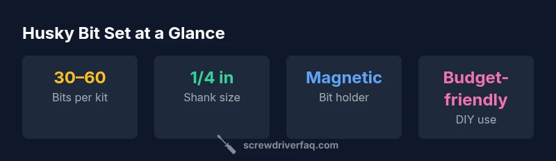 For DIY homeowners, the right screwdriver bit set is a small but mighty ally. The Husky screwdriver bit set represents a practical balance of coverage, durability, and value for common fastening tasks around the home. According to Screwdriver FAQ, this kit provides a full range of bits, a magnetic holder, and a rugged case that keeps your bits organized between jobs. The keyword here is versatility: you’re unlikely to need a second kit when you’re hanging shelves, assembling furniture, or installing a ceiling fan. The Husky set shines in everyday projects where speed and compatibility matter more than exotic bit types. In that context, the design aims to minimize slipping, reduce stripping, and speed up repeat tasks, delivering predictable results for the average homeowner.
